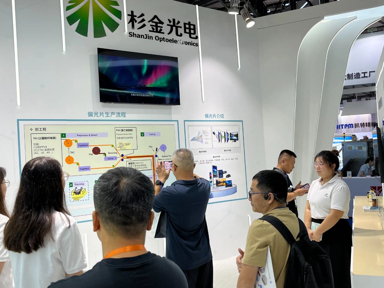 杉金光電總裁朱志勇受邀出席展會(huì)開(kāi)幕式并剪彩此次參展,杉金光電帶來(lái)了高端LCD偏光片、OLED偏光片、中小型偏光片、環(huán)保型溶劑等領(lǐng)域的多項(xiàng)極具競(jìng)爭(zhēng)力的產(chǎn)品,還設(shè)立了偏光片互動(dòng)體驗(yàn)區(qū),讓觀(guān)眾更加清晰、直觀(guān)地了解到偏光片的功能和成像原理,吸引了眾多觀(guān)眾駐足。