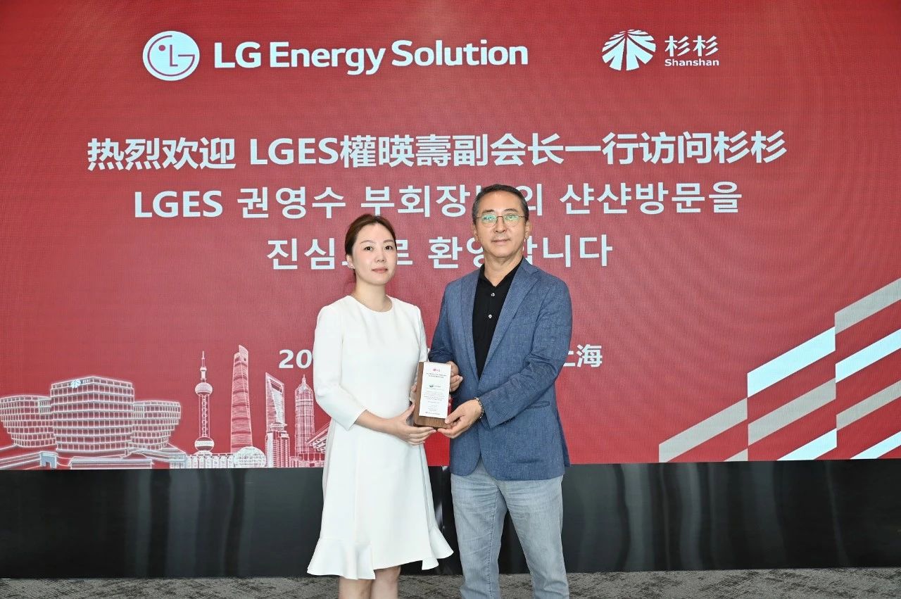 會后,權(quán)暎壽為杉杉科技頒發(fā)LG2023年優(yōu)秀合作伙伴獎,以感謝杉杉科技及團隊對LGES發(fā)展作出的貢獻。